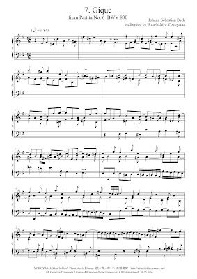 So, we will try to play Bach's "Gique" (according to his spelling) in ternary. I show you the 1st page of my realisation.